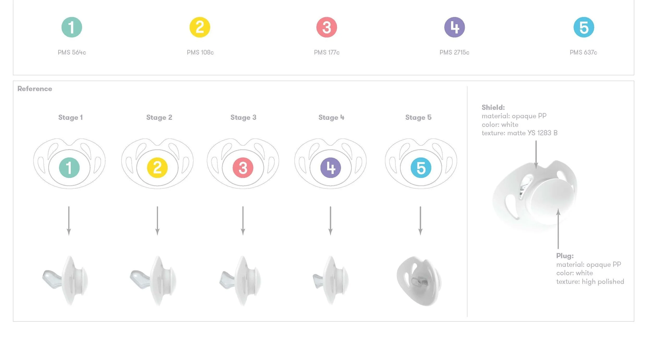 Icon Development for the 5 weaning stages of going from pacifier use to “buh-bye binky!”